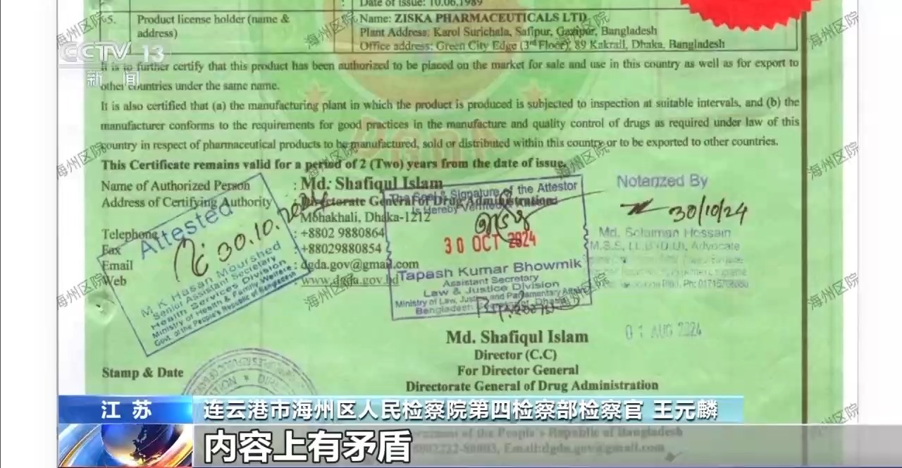 稽查官 王元麟:归拢时刻出具的材料,内容上有矛盾,有的材料暴露许可的药品是片剂,有的材料暴露许可的药品是胶囊。从事实上来看,这款药品根柢就不存在片剂,这个材料跟事实存在很大的区分,有可能是伪造的。