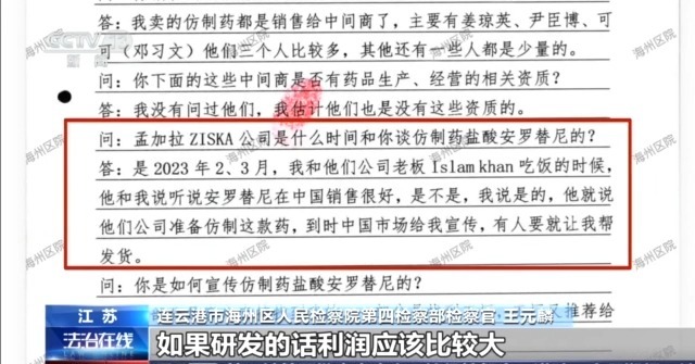 稽查官 王元麟:毛某与仿制该款药品制药厂的别称高档科罚东谈主员相比老成,由于这款药在中国的销量相比好,两东谈主约定由国外这家药厂进行仿制,毛某则在中国作为总代理进行销售。